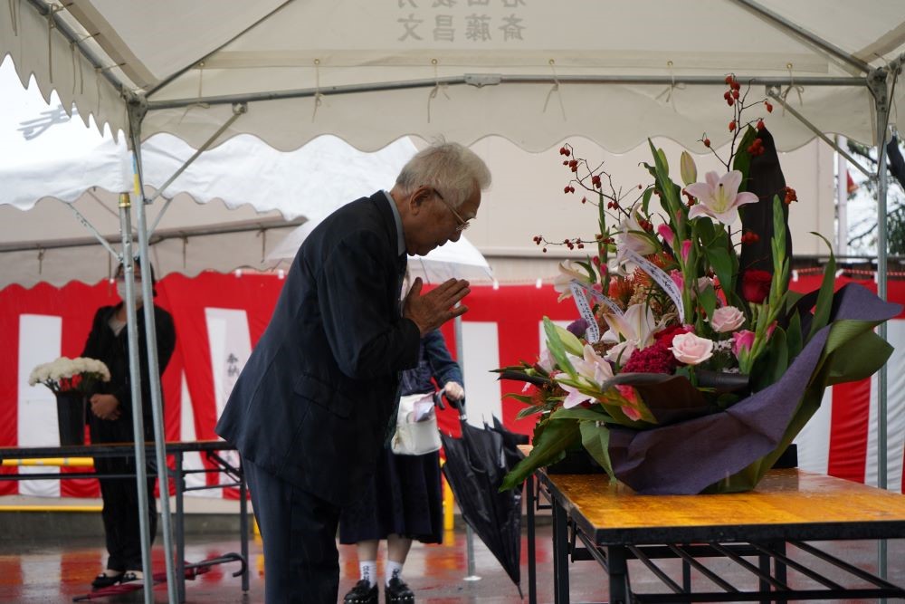 当日は数年ぶりに天候にも恵まれ、音楽隊が記念碑の前で「君が代」「国の鎮め」を演奏する中、招待者や関係者約30名が献花を行いました。