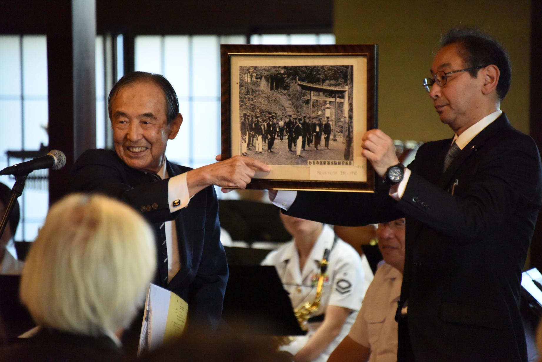 記念演奏会に先立ち、谷村政次郎先生により薩摩バンドに関する貴重なお話しがありました。その後、フェントンの「君が代」(隊員の独唱)と「先人を仰ぎて」で始まり、「ボギー大佐」「西郷どん」「ゴジラ組曲」「横須賀ストーリー」等、8曲をパワフルで素晴らしい演奏を披露して下さいました。終演後に山本真理子会長より感謝状の贈呈がありました。